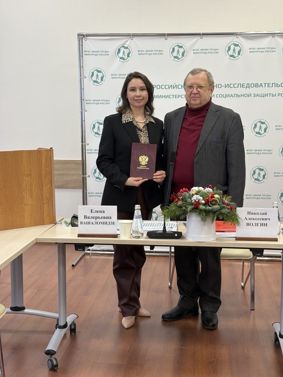 23 декабря на заседании диссертационного совета ФГБУ «ВНИИ труда» Минтруда России Николай Волгин — председатель диссертационного совета, д-р экон. наук, профессор, тожественно вручил Евгении Хотеевой диплом кандидата экономических наук.