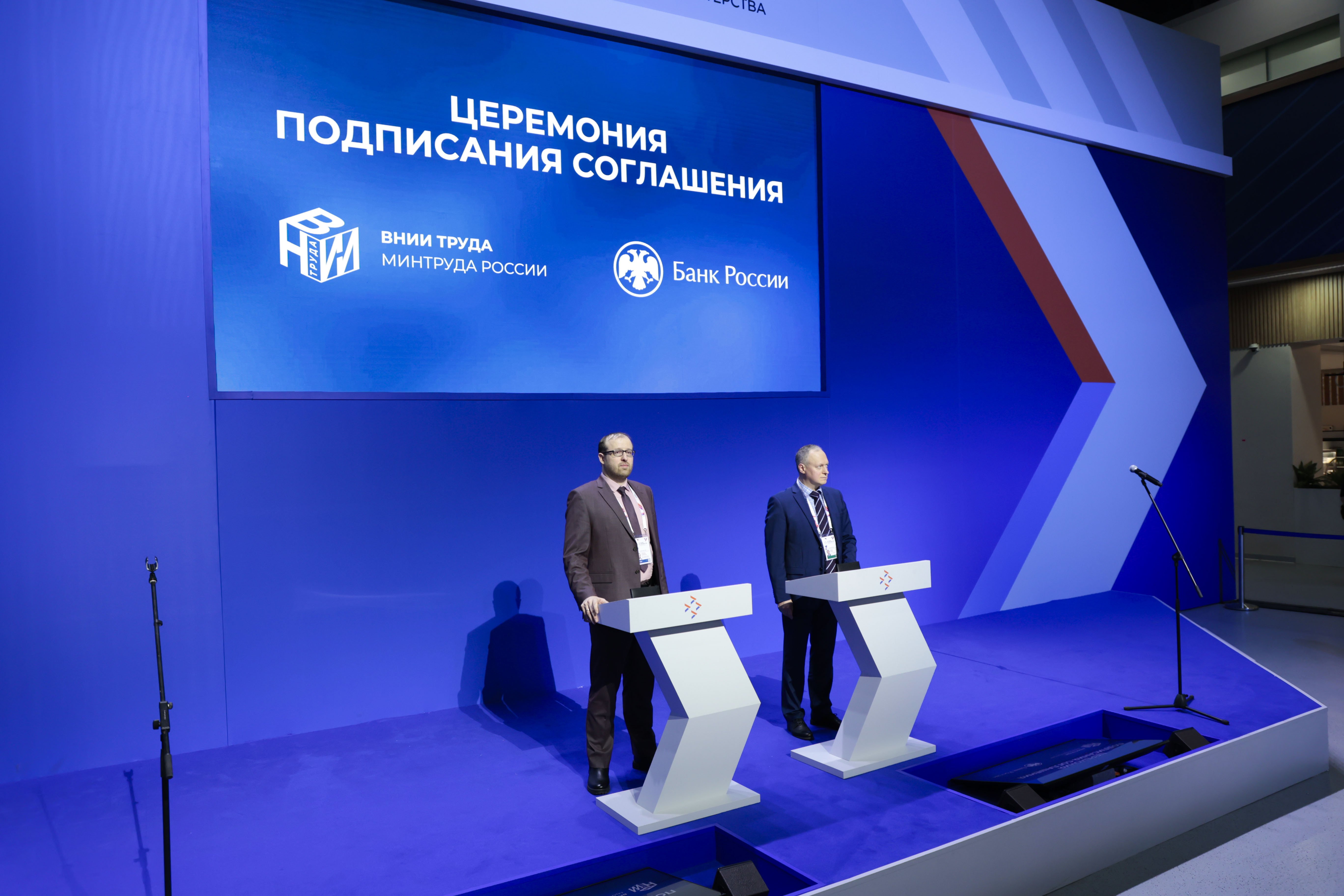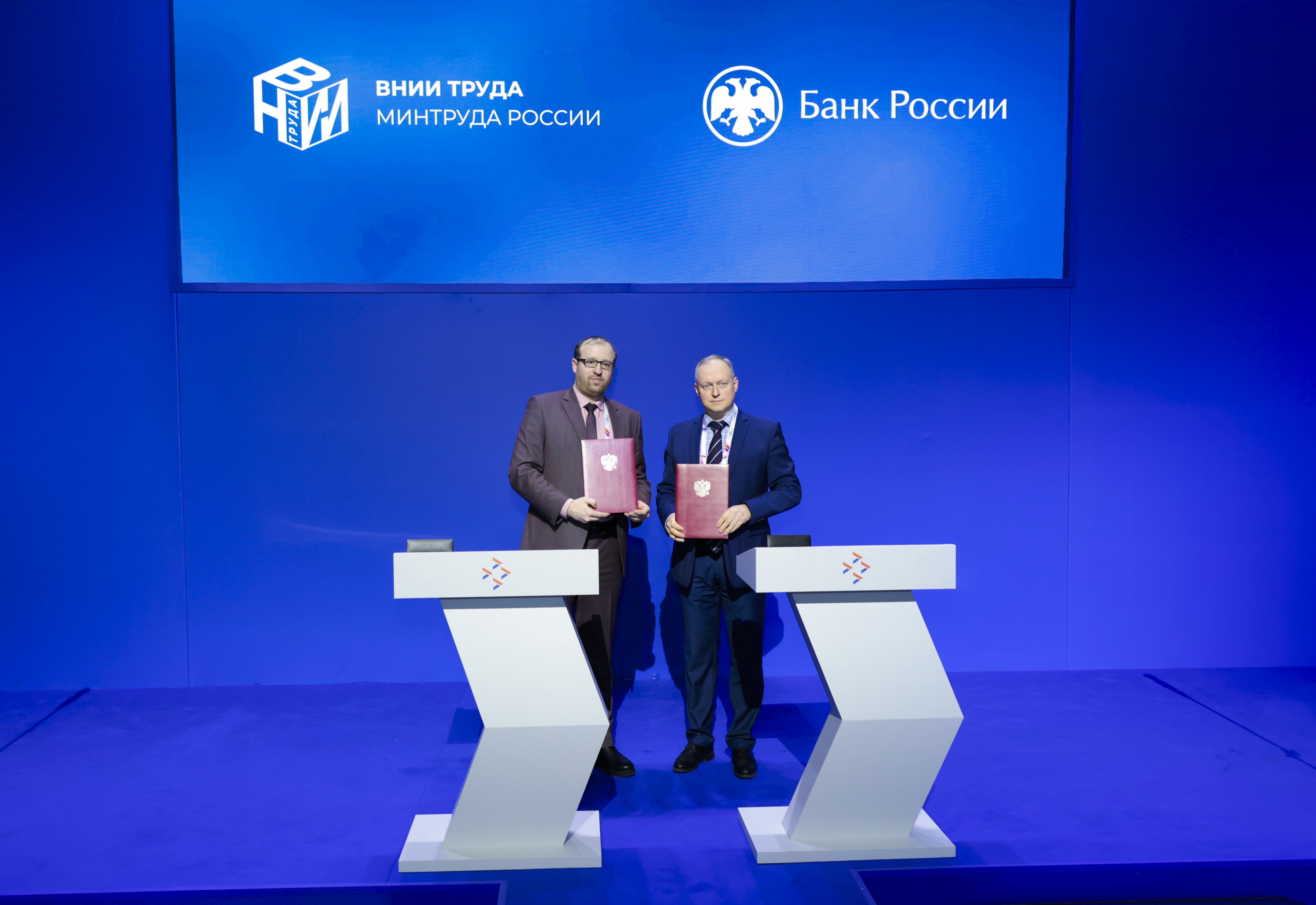 4 декабря на площадке Всероссийского кадрового форума ФГБУ «ВНИИ труда» Минтруда России в лице и.о. генерального директора Владимира Смирнова и Университет Банка России в лице директора Андрея Афонина подписали соглашение о сотрудничестве. Долгосрочное взаимодействие сторон направлено на развитие научно-исследовательских, образовательных и инновационных проектов в сфере анализа рынка труда. Стороны договорились о совместной реализации научных исследований, формировании рабочих групп, проведении конференций и образовательных программ, а также об обмене данными и экспертизами.